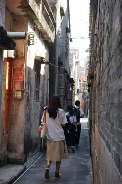 在走访过程中,调研小组还穿过了很多小巷,仿佛置身在一个古镇风格的迷宫里面。到这里调研小组关于新基走访调研就结束了。在这次走访调研中,调研小组发现新基村的村落的街巷格局、历史风貌保存较为完好,基本维持原貌。但发现可能由于缺乏资金的投入,部分历史建筑因为年代久远,已出现不同程度上的损坏,亟需采取有效措施进行修缮保护。