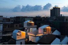 白房子,与村里的传统房子不太一样,是采用了很现代的一种反差,像是更抽象的表达,希望在屋顶之上有一个更理想的建筑形态,展现给大家看,想象未来村落的发展。当你漫步在古村落幽静的巷道中,踱步走上这些狭窄的楼梯连廊,环绕、穿行,上到屋顶的时候,一下子放眼望去,整个天空突然出现,就有一种豁然开朗的感觉。