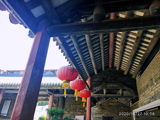 走进莫氏祠堂的大门,穿过狭长的广场,经过高大的石牌坊,里面是一个四合院建筑,上面布满灰塑、木雕、石雕、砖雕、壁画、对联、陶瓷等精美雕饰。仰头看老建筑上的石雕砖雕,老百姓把对生活的美好寄望全都雕镂在上面。