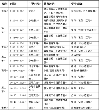 线上教学的课堂管理和临场交互感较差,长时间的学习会让员工容易疲倦和分心,为弥补这种方式的缺陷,国贸教师们创新教学方式,将授课内容“专题化”,知识点或者技能点分解成若干个15至20分钟的片段教学,并穿插视频或者习题练习,减少员工习疲倦心理,增加课堂趣味性。下表一为陈芳娌老师在《国际商务谈判》课程中精心设计的“专题化”教学方案。