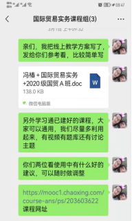 病毒无情人有情,疫情虽阻隔了线下见面的机会,却阻挡不了老师们教学的热情。为积极准备线上教学工作,各课程组老师们积极开展线上教学备课工作,结合培养方案精心准备课程,分工负责,共通有无,在线上教学平台《学习通》搭建课程,借助中国慕课平台、b站优秀老师视频合集、多维度,多方位的讲透每一个知识点,不断完善教案和习题集。如梁丹老师的《国际经济学(国际金融)》,谢晓玲老师的《商务英语口语》、孙慧卿老师的《中级宏观经济学》,廖倩,冯椿,周慧敏老师授课的《国际贸易实务》课程等。